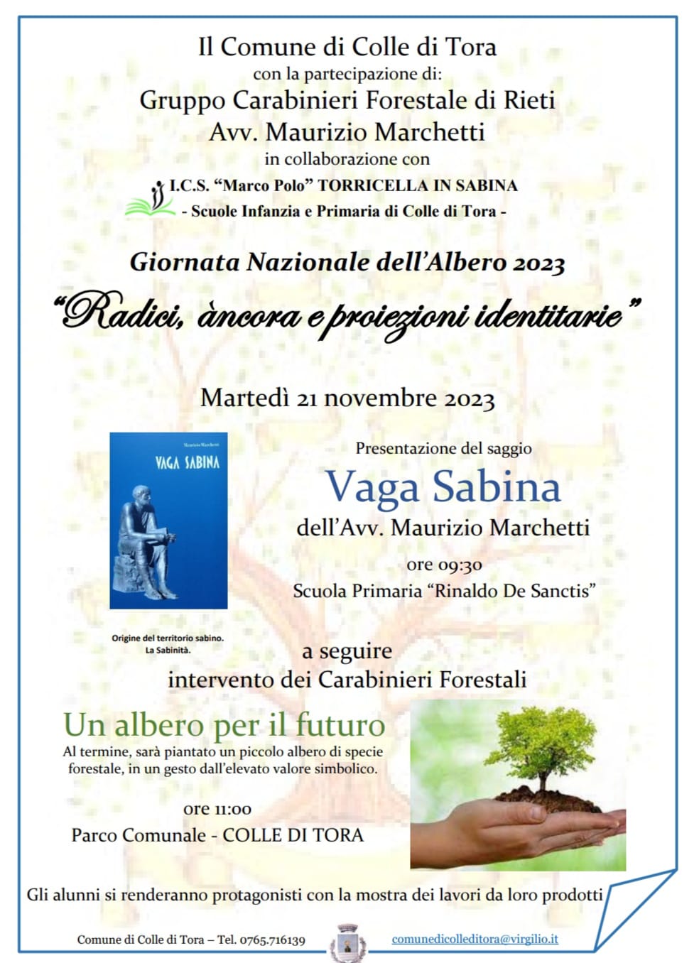Martedì 21 novembre, si è svolta a Colle di Tora la Giornata Nazionale dell'Albero 2023 "Radici, ancora e proiezioni identitarie"